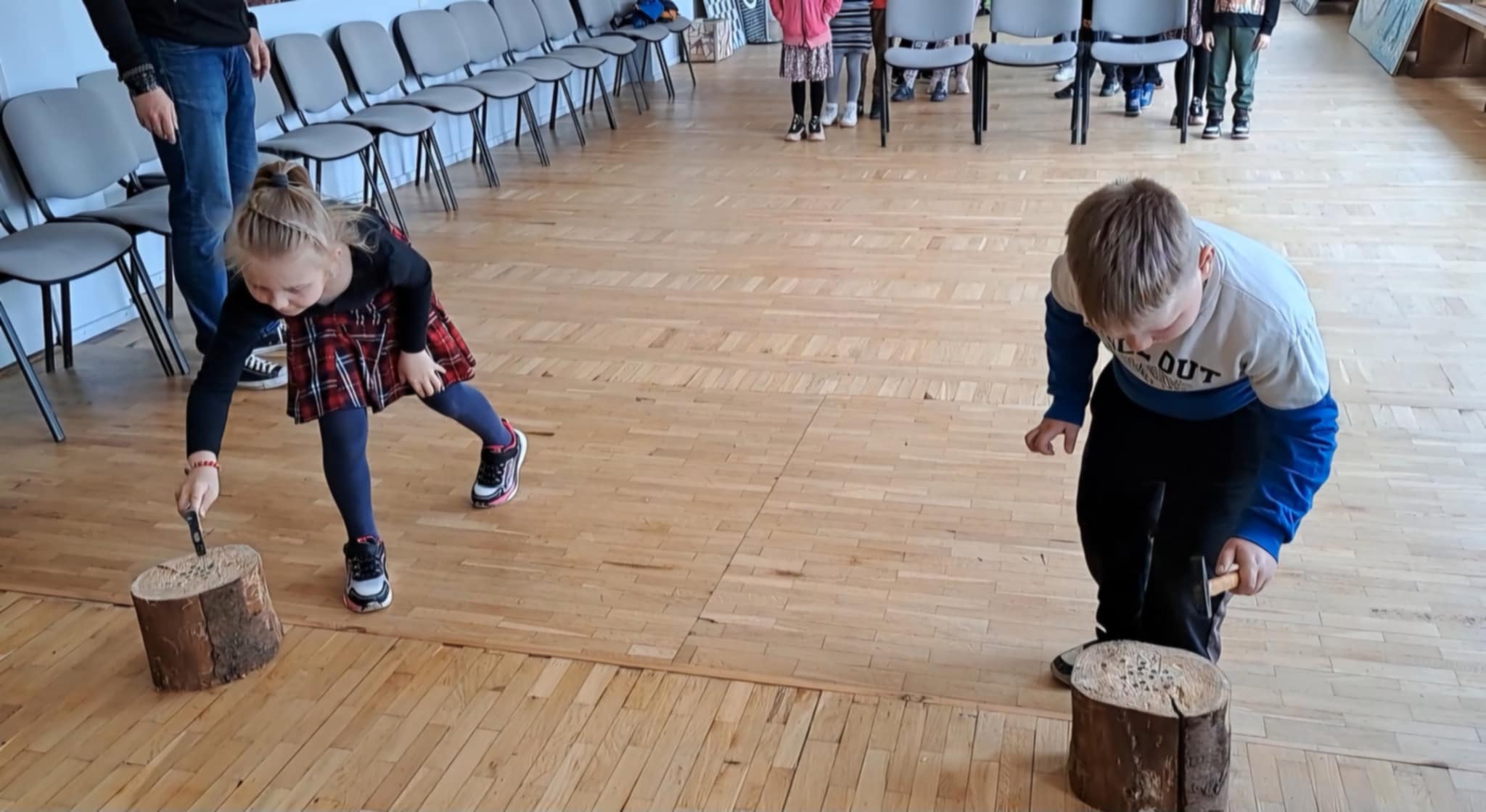 Po visų rimtų darbų, laukė tėvelių paruošti žaidimai ir siurprizai. Teko palenktyniauti, kuri komanda greičiau įkals vinį, susuks siūlu pririštą mašinėlę. Ir galiausiai kiekvienam buvo įteiktas geriausio apdailininko diplomas, bei saldūs prizai.