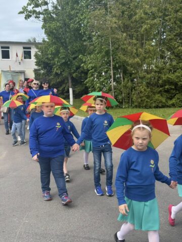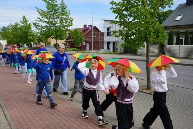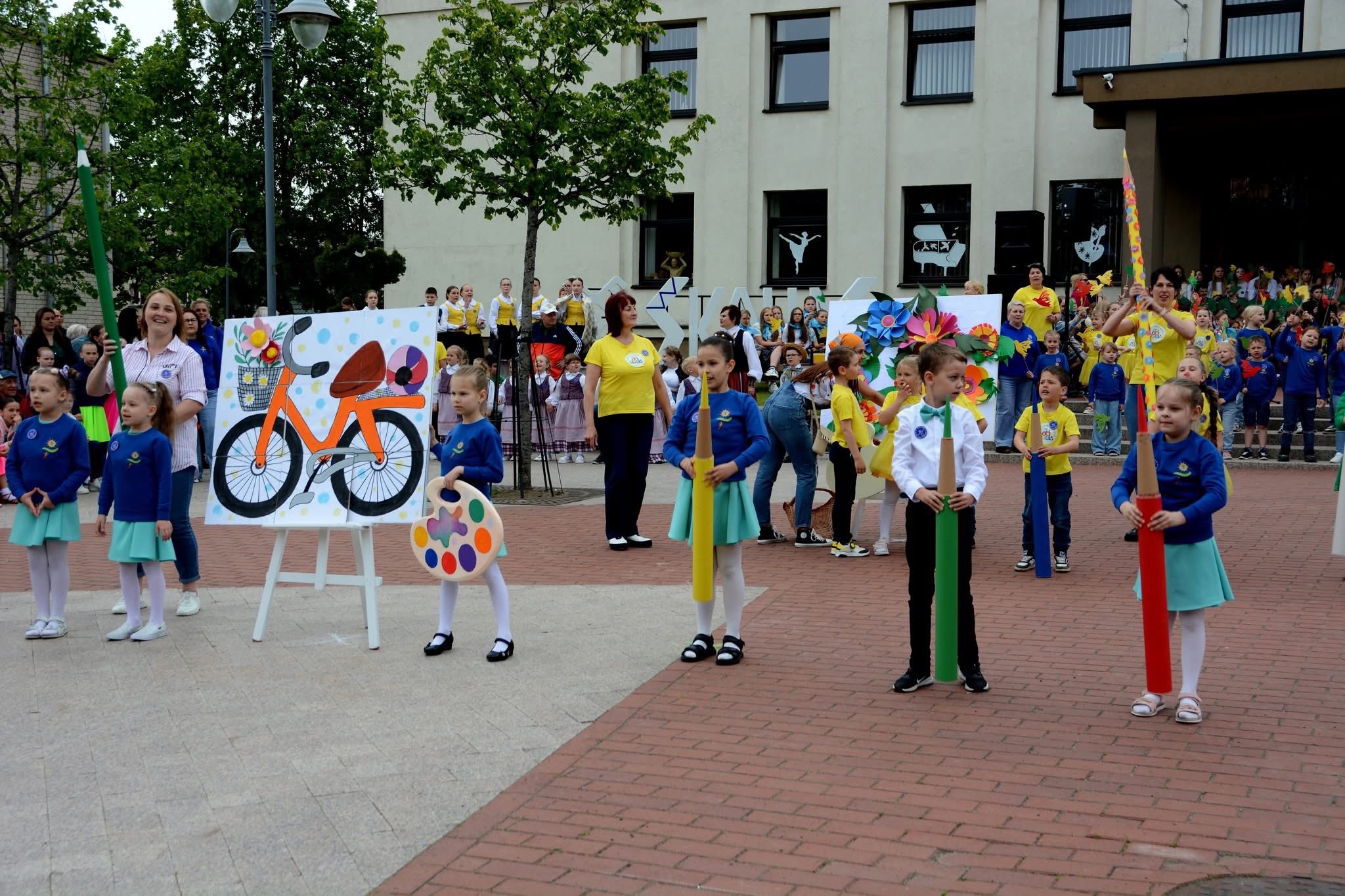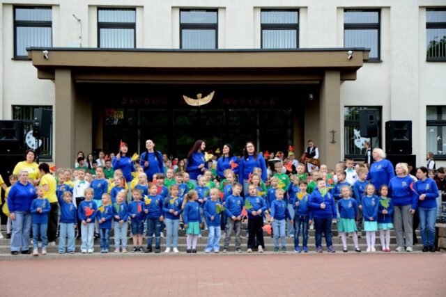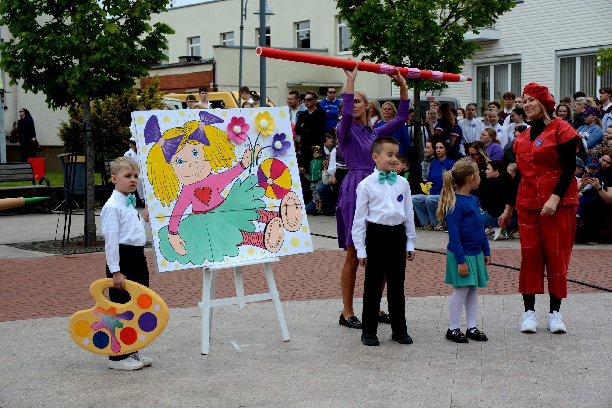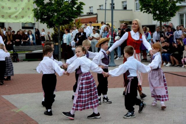 Penktadienį prie meno mokyklos skambėjo muzika, sukosi šokiai ir net lietus nesutrukdė – vyko vaikų koncertas „Augu po Skuodo dangum“!