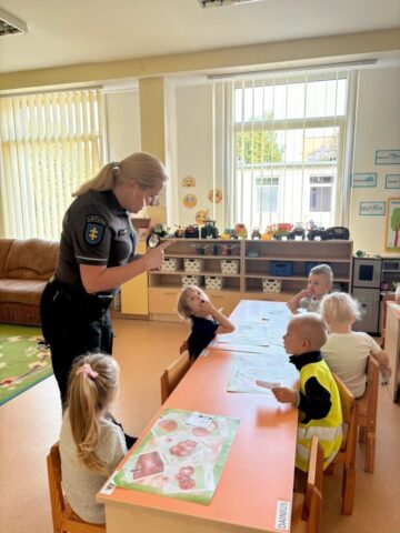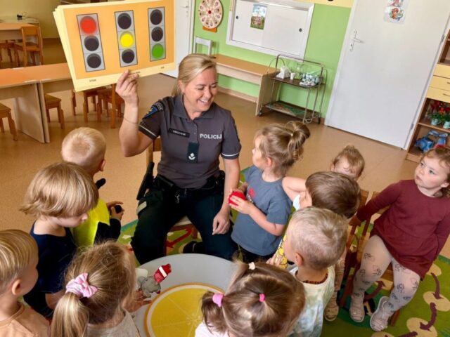 Apibendrindami savaitės temą, į svečius pasikvietėme Skuodo policijos pareigūnę, kuri vaikams papasakojo apie saugų eismą kelyje, parodė, kaip elgtis įvairiose situacijose, atsakė į mažųjų klausimus.
