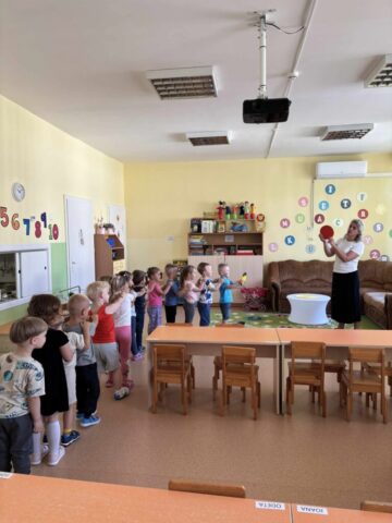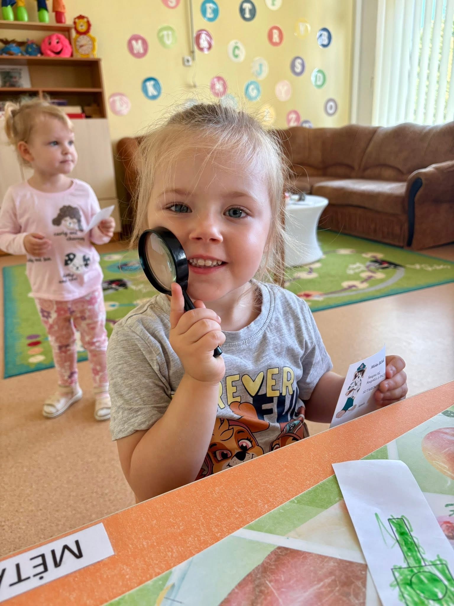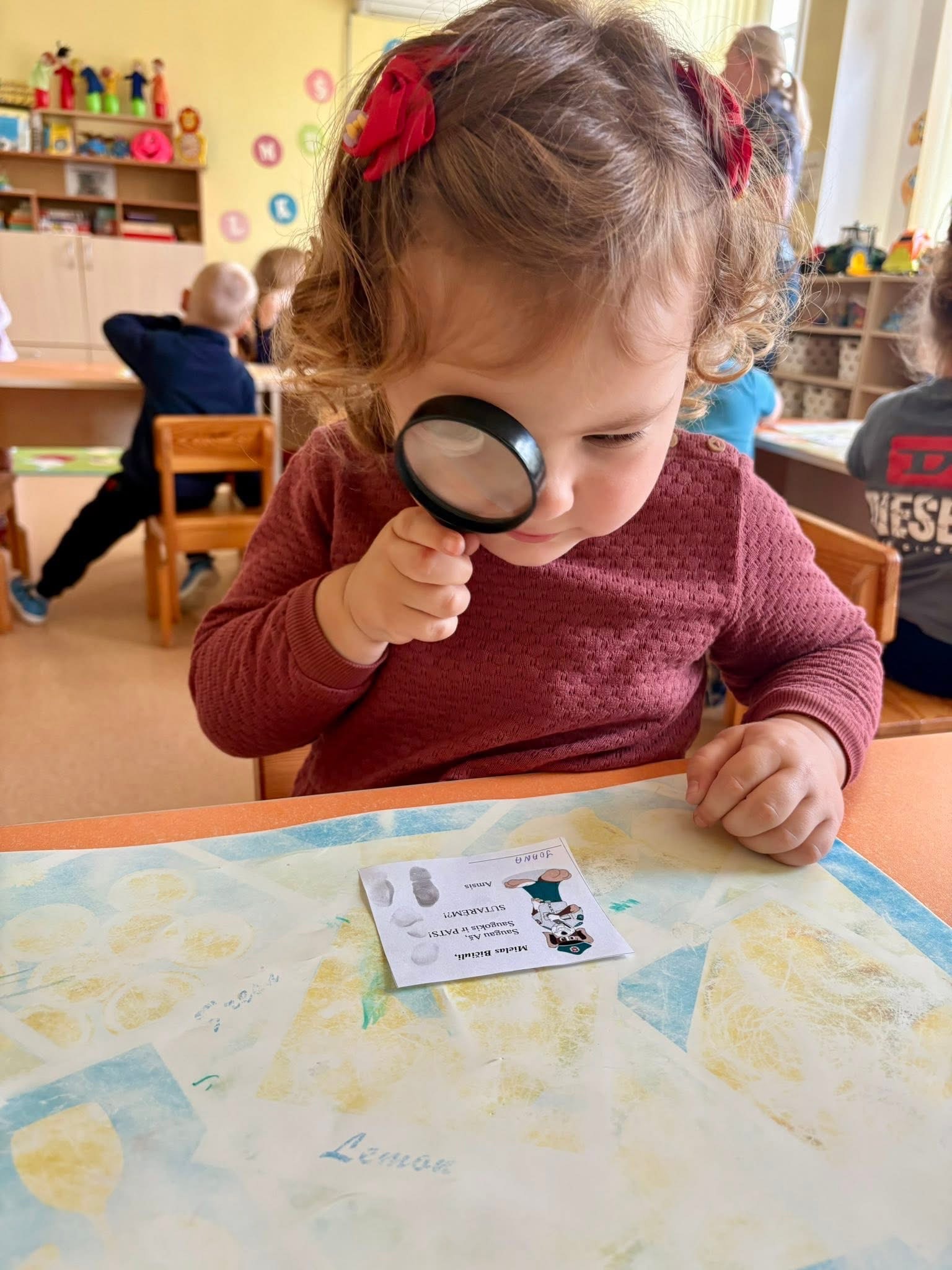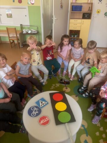 Vaikai susipažino su šviesoforu, pėsčiųjų perėja, dviratininko šalmu, saugos liemene bei atšvaitais. Jie aktyviai įsitraukė į kelionės inscenizacijos žaidimus, pasivaikščiojimus lauke.