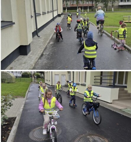 Rugsėjo 22-oji – Diena be automobilio. Tądien vaikai darželio teritorijoje linksmai važinėjosi paspirtukais ir dviratukais, džiaugdamiesi judėjimo laisve.
