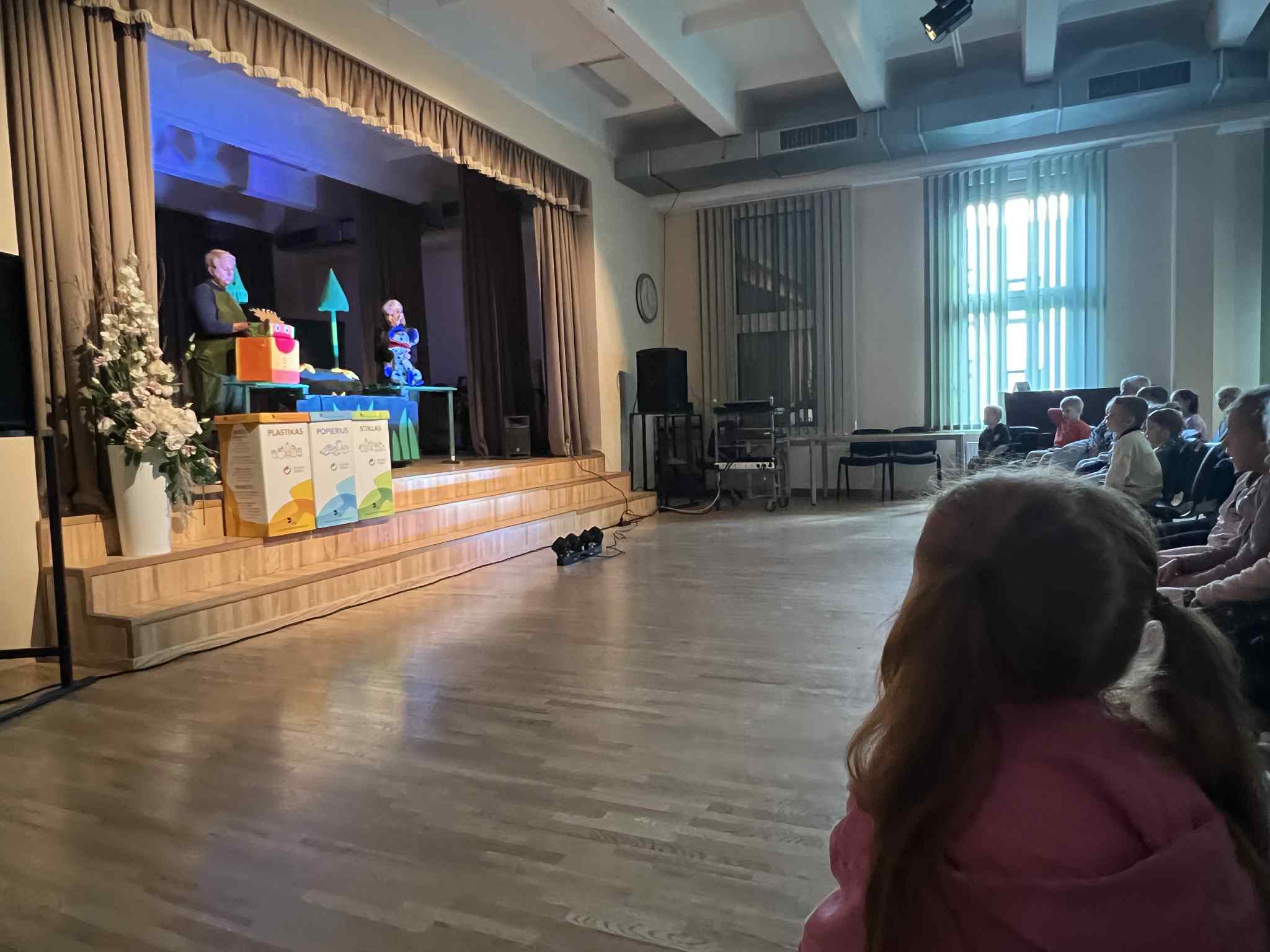 Peliukas švariukas linksmai ir paprastai paaiškino, kodėl būtina rūšiuoti stiklą, plastiką, popierių bei maisto atliekas. Vaikai ne tik stebėjo veikėjų nuotykius, bet ir patys buvo įtraukti į spektaklio eigą – atsakinėjo į klausimus, juokėsi ir plojo kartu su draugais.