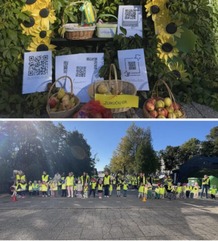 Žygyje dalyvavo darželio ugdytiniai ir darželio bendruomenė. Žygio dalyvius darželio kieme pasitiko linksma muzika, geras oras, puikiai nusiteikę draugai ir ugdytojai. Ikimokyklinio ugdymo mokytoja Sandra Liutkuvienė ir meninio ugdymo mokytoja Daiva Mockienė organizavo bendrą mankštą. Judesio korekcijos specialistė Živilė Jazbutienė ir priešmokyklinio ugdymo mokytoja Oresta Lekstutienė parengė turistines užduotis su QR kodais. Pasimankštinę, su užduotimis visi leidosi į žygį Skuodo miesto parko sveikatingumo ir pasivaikščiojimų takais. Vyravo puiki nuotaika, geras ūpas, o grįžus laukė sveikatinimo prizai – gardūs vaisiai (kriaušės, bananai, obuoliai). Smagu pajusti gamtos grožį kartu ir išgyventi naujų potyrių.