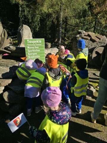 Mūsų laukė ir nepaprastas susitikimas V. Into akmenų muziejuje su pelyte Lava Riedulyte. Ji pasiūlė vaikams tapti mažaisiais tyrinėtojais ir susirasti akmenuką- draugą. Iš akmenukų išdėlioti draugystės takelį iki Vandens malūno, kad žinotume kur sugrįžti, kai Pelytė keps draugystės pyragą.
