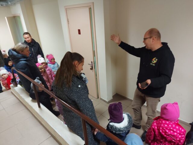 „Saulutės“ korpuso vaikai ir darbuotojai vyko į Skuodo socialinių paslaugų šeimai centrą, o „Liepaitės“ korpuso vaikai ir darbuotojai vyko į Skuodo rajono  Kultūros centą. Abiejų įstaigų  vadovai pasitiko vaikus ir darbuotojus, nuvedė į priedangas, supažindino su jomis esančiomis priemonėmis, papasakojo apie jų paskirtį ir naudą ekstremalių įvykių metu.