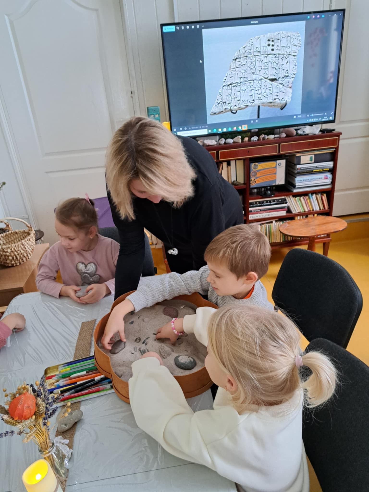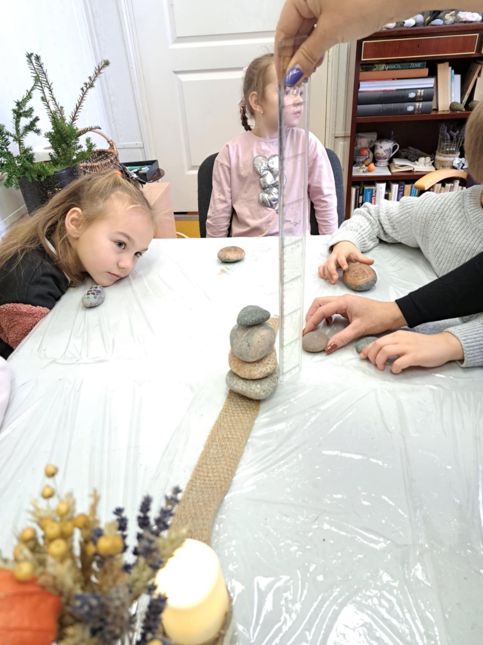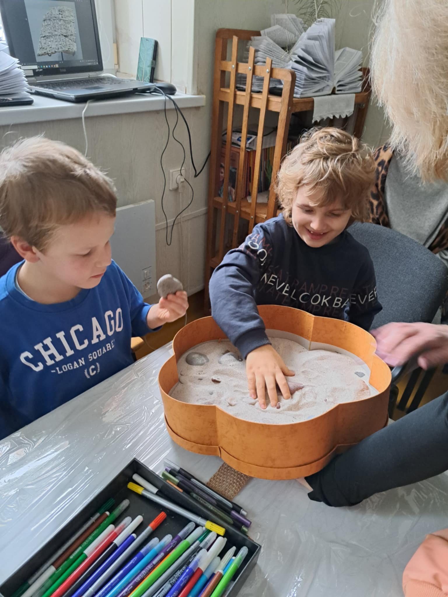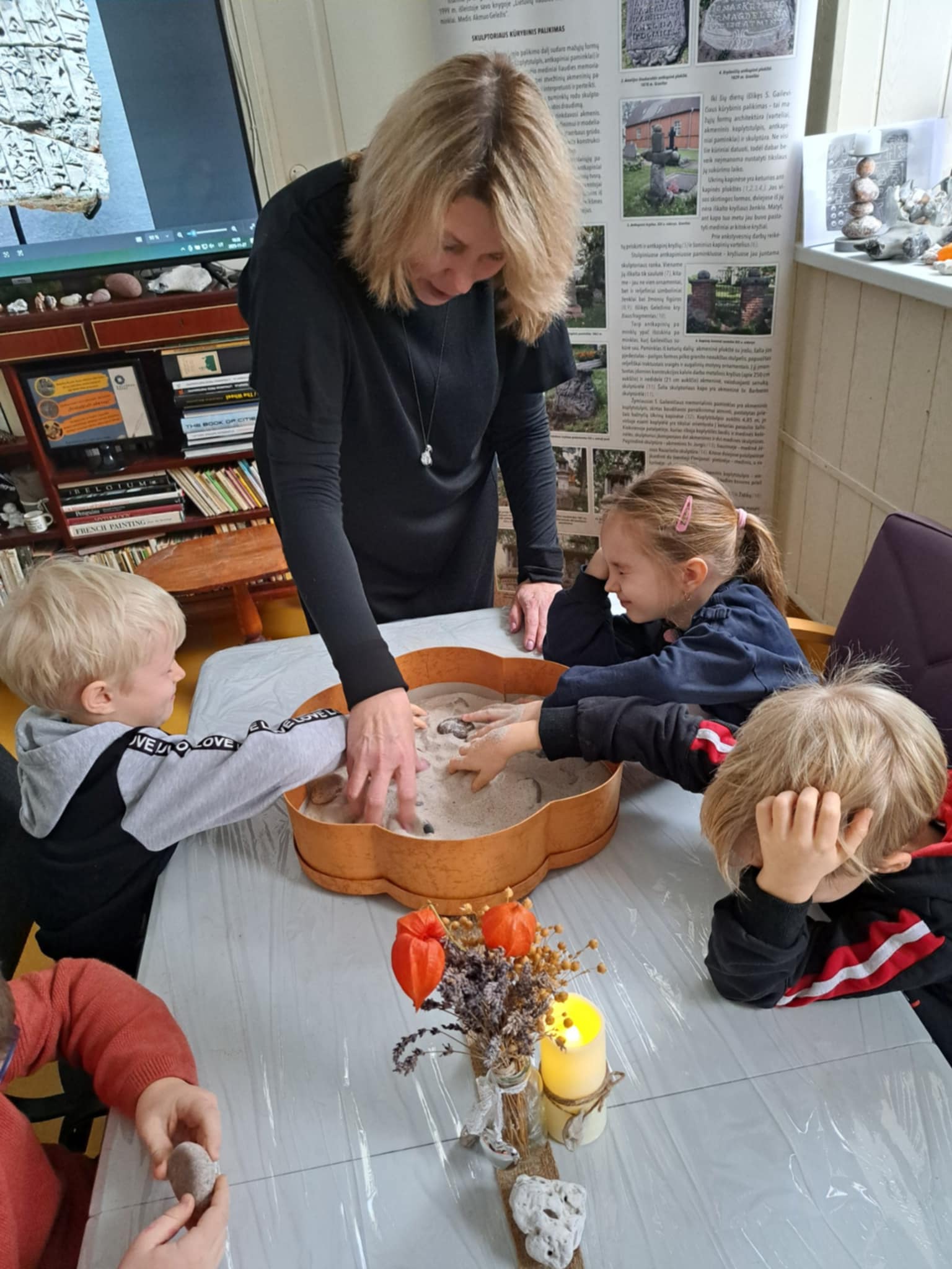 Jaukioje Ukrinų bibliotekoje bibliotekos vedėja Valda supažindino vaikus su įvairių formų akmenukais, papasakojo, kaip gimsta skulptūros, kaip meistrai dirba su akmeniu, ir parodė, kad net mažiausias akmenukas gali tapti meno kūriniu. Įkvėpti pasakojimų, vaikai ėmėsi darbo – dekoravo akmenukus, spalvino, kūrė raštus ir piešinius, kuriuose žaidė jų fantazija. Kiekvienas akmenukas tapo vis kitoks, vienas už kitą gražesnis, o vaikai su pasididžiavimu rodė savo kūrinius draugams.